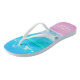 Received these yesterday and as the sun was shining I couldn't wait to get them on! They are very comfortable. I'm a size 5 so I would order the next size up next time but they are fine. The Blue Lagoon design is vibrant and I am thrilled. I've already packed them ready for my Summer Holiday abroad. I've ordered the matching t-shirt so I can't wait for that to arrive. The printing is really high quality. It literally is a work of art on flip flops! Fabulous.