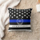 A custom police flag throw pillow featuring a thin blue line police themed American flag. On top of this is yours or your gift recipient's Monogram and last name.