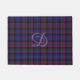 Traditional, colourful, universal tartan plaid door mat done in the regency blue, mauve, green, black and white Pride of Scotland pattern. A single letter monogram, in the middle, is ready to personalise for yourself or as a great gift idea.