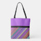 Monogrammed Purple Striped All-Over-Print Tote Bag