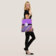 A custom all-over-print tote bag that has a purple striped pattern. Personalise this product with your own initial by using the custom template.