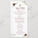 Design features the monogram of bride and groom displayed over joined rings at centre top. The heading, "MENU" is displayed in a lovely burgundy font just beneath. Your customisable text displaying menu options is featured in same burgundy font. Entire design is bordered by burgundy roses at top left corner and bottom right. Very elegant. Designed to coordinate with the "Elegant Rose-Corsage Wedding Suite".