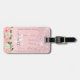 Monogrammed Rose Gold Glitter Drips Pink Floral Luggage Tag