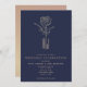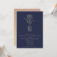 Elegant and modern, this monogrammed rose gold and navy blue wedding invitation combines a minimalist floral illustration with sophisticated monogram initials. The deep navy blue background creates a striking contrast with the metallic rose gold accents, giving this design a luxurious and timeless appearance. Perfect for couples who want a classy yet modern invitation for their special day.