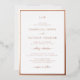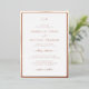 Simple, elegant, and stylish, this formal wedding invitation features a classy border, bride and groom's monogram, and an elegant calligraphy script pressed in real rose gold foil.