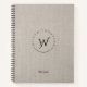 A beautiful monogram design using your name and initial in a classy circle shape. A beige faux linen texture in the background with black accents creates a unique styles. Customise the monogram and text and make it your own recipe cookbook. Ideal office and school stationery supplies. Other linen colours offered in this design.