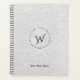 A beautiful monogram design using your name and initial in a classy circle shape. A grey faux linen texture in the background with black accents creates a unique styles. Customise the monogram and text and make it your own. Ideal office and school stationery supplies. Other linen colours offered in this design.