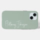 This monogrammed sage green iphone 15 case is trendy yet and classic. It features your name in a fabulous modern script font in white. It's simple and minimal and professional.