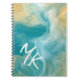 Monogrammed Sandy Brown Ocean Blue Fluid Art Notebook