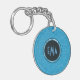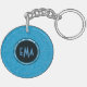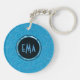 Monogrammed Sky Blue Embossed Floral Pattern Key Ring
