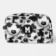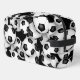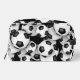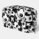 This soccer themed Dopp kit features a random pattern of varied size soccer balls turned every which way on a black background - customise with the soccer player's monogram - by katz_d_zynes