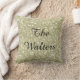 This gold throw pillow has a sparkly faux finish and your monogram or family name written in a fancy script. No glitter or sequins are used in the making of this pillow, so you have all the glam and the pillow is still soft to the touch.