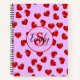monogrammed stylish Red heart pattern on purple Notebook