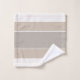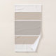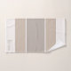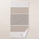 It's a classic. Colour blocking in various shades of taupe and linen with white dividers and monogram at base of towel. Available in a variety of shades.