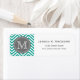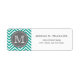 Cool cute geometric trendy teal blue, grey and white zigzag chevron pattern with grey nameplate for your custom monogram initial letter. Chic monogrammed modern address labels.