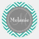 Monogrammed Teal Blue & Grey Zigzag Classic Round Sticker