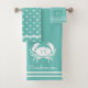 Monogrammed Teal Blue White Crab Nautical Bath Towel Set