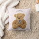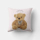 Monogrammed newborn's Teddy bear throw pillow with name and date. Available in different sizes.
