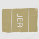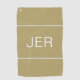 Classic design features custom monogrammed initials in white shadowed font on a gold colour background centred between two matching single stripes. Customise with the easy-to-use template.