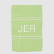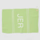 Classic design features custom monogrammed initials in white shadowed font on a light lime green colour background centred between two matching single stripes. Customise with the easy-to-use template.