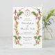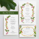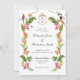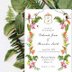 Gorgeous hand painted watercolor tropical wedding invitation framed by a delicate arrangement of colourful tropical flowers, greenery and birds. This design also features a simple monogram of stacked initials within a crest, gives a very custom-made hand painted vibe.