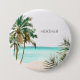 Add a tropical touch with this coastal button! Featuring a watercolor palm tree, green palm leaves, and a custom monogram, it's suitable for beach lovers and summer vibes.