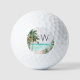 Hit the greens with tropical vibes! These monogrammed golf balls feature a watercolor beach scene, palm tree, and coconut tree—suitable for summer fun.