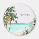 Monogrammed Tropical Palm Tree Leaves Blue Beach Magnet