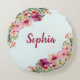 Monogrammed Tropical Pink Flowers Floral Botanical Round Cushion