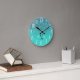 Create your own personalized monogram turquoise and faux teal glitter ombre wall clock.