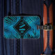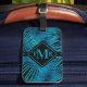 Tropical turquoise palm tree fronds on black, these luggage tags feature your monogram in chic turquoise lettering on black on the front and a card slot on the back for easy identification. Create for yourself or give as a gift.
