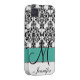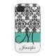 Monogrammed Turquoise Black White Floral Damask Case-Mate iPhone Case