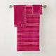 This bath towel set is created in shades of light & dark pink abstract stripes on a dark fuchsia background and includes optional monogram on the hand towel and wash cloth. Use the Personalize option to change the letters to your initials. Use the Customize option if you need to tweak the positioning of the letters or want to change the font. I've used a light pink for the font color for a subdued look but you can change the color to something else (like white or an even paler pink) for a bolder look.