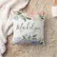 Monogrammed Watercolor Blue Pink Hydrangea Floral Cushion