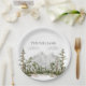Monogrammed Watercolor Mountain and Forest Paper Plate