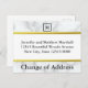 Do you need to make a moving announcement? This postcard has a white marble texture look and you can customise the card with your monogram, name and new address. At the top there's a square for your monogram. At the bottom there's custom black text (shown:'Change of Address'). In the middle is a white background for your name and new address.