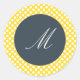 Monogrammed White, Yellow and Charcoal Polka Dot Classic Round Sticker