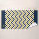 Monogram bath towel set with a trendy chevron pattern in blue and yellow.