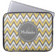 Monogrammed Yellow & Grey Chevron Pattern Laptop Sleeve