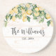 Monogrammed Yellow Lemon Tree White Wood Coaster