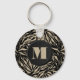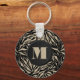 A stylish keychain features your monogram initial on a black and tan wild animal print pattern. Create for yourself or give as a gift. MATCHING items in our store.