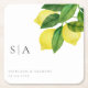Monograms Lemon Citrus Branch Greenery Wedding Square Paper Coaster