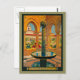 Vintage travel poster for Monreale , Palermo in Italy. Colourful Italian courtyard with an ornate fountain.