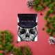 Monster bash Skeleton-themed Halloween party real foil invitation design. The design features our own hand-drawn illustration of a close-up view of a Skeleton monster face wearing a dark purple top hat. "Monster Bash" is displayed in a stylish brush script handwriting in white with the Halloween party details displayed over the skeleton artwork to create a bold and unique Halloween party invitation design. The reverse side features a grungy and rustic black and purple stripe design. All illustrations contained in this bold Skeleton Halloween theme invitation are hand-drawn original artwork by Moodthology.