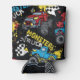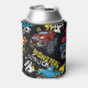 Abstract seamless Monster Car pattern on grunge shape cracked background with shabby dots and spray paint texture, ink. Childish style wheel auto repeated decor.