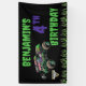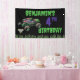 Bright slime-green lettering announces the birthday celebration, while the age is highlighted in bold purple for an eye-catching contrast that stands out against the dark background. A row of glowing green flames stretches along the bottom, adding an edgy monster truck look that fans instantly recognise. The name and age are fully customisable, making it easy to personalise the banner for any birthday celebration. Perfect for monster truck themed parties, this design creates an exciting focal point for party decorations and brings the action-packed spirit of Monster Jam to the event.