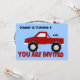 A great theme for a boy's birthday. Easy to personalise! The crushed letters on the front of the invitation that say "you are invited" can be removed and replaced with your own choice of text. Use the customise feature to create your one-of-a-kind monster truck invitation. Original art by Rebecca of Night Owl's Menagerie, copyright 2011.