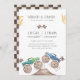 Blue & Green Watercolor Monster Truck Siblings Joint Birthday Party Invitation