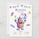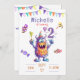 This colourful and cute monster birthday invitation is the perfect way to invite friends and family to celebrate your child's special day! The invitation features a fun and playful cute monster holding your child's age in his hand, all in bright colours. The text on the invitation is in a fun and whimsical font, and it includes all of the important details about the party.
