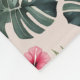 A vibrant watercolor pattern featuring lush Monstera leaves and pink hibiscus flowers, accented with golden tropical foliage. Perfect for bringing a touch of paradise to any space or product.